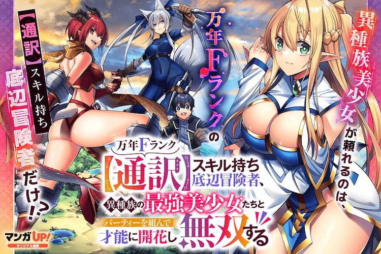 渡辺つよしの新連載「万年Fランク【通訳】スキル持ち底辺冒険者、異種族の最強美少女たちとパーティーを組んで才能に開花し無双する」が、本日8月25日にマンガUP!でスタートした。原作は夜分長文、原案ははにゅう、構成は華鳥ジローが務める。