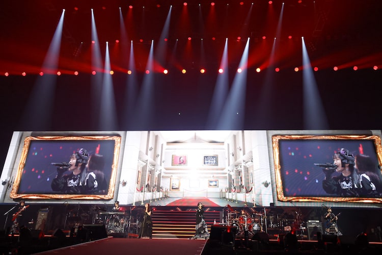 2005年にスタートし、2024年は3日間で7万人を動員するなど、一大イベントに成長した「アニサマ」。オープニング映像では歴代の名シーンが美術館のような演出で映し出され、これまでの軌跡を感じさせた。奥井は2005年の「アニサマ」第1回でもトップバッターを務め、出演は今年が6年ぶり10回目。Roseliaとのコラボで披露した「Shuffle」は、今年25周年を迎えるTVアニメ「遊☆戯☆王デュエルモンスターズ」のオープニングテーマであり、両者は祝祭の幕開けにふさわしいパワフルな歌声と演奏で、会場を真っ赤なペンライトの灯りに染め上げた。