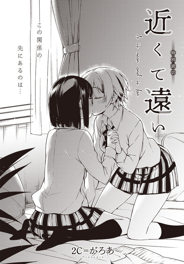 「近くて遠い」は同い年で家が隣同士の女子高生・桃花と咲彩、ともに幼い頃に親が離婚しており、何をするにも一緒だった2人を描いた1編。咲彩に対してほのかな恋心を抱いていたもののそれを表に出さずに過ごしていた桃花だったが、互いの親同士が再婚することになったため、彼女たちの関係性が変わり始める。