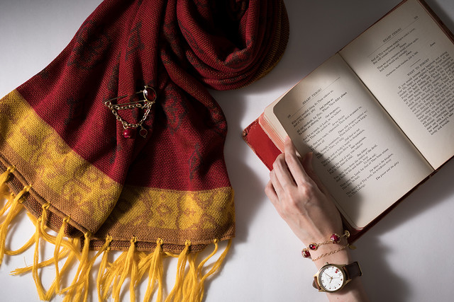 ラインナップされたのはストール&ストールピンセット、腕時計、ブレスレットの3種。上品なレッドが映えるストールは、マフムートのパートナーである犬鷲・イスカンダルを操る道具をストーンとチェーンで表現したストールピンがアクセントに。また腕時計は、ブラウンのベルトとゴールドのケースがクラシカルなデザインに、ブレスレットはゴールドチェーンのレイヤードデザインが女性らしいアイテムに仕上がった。