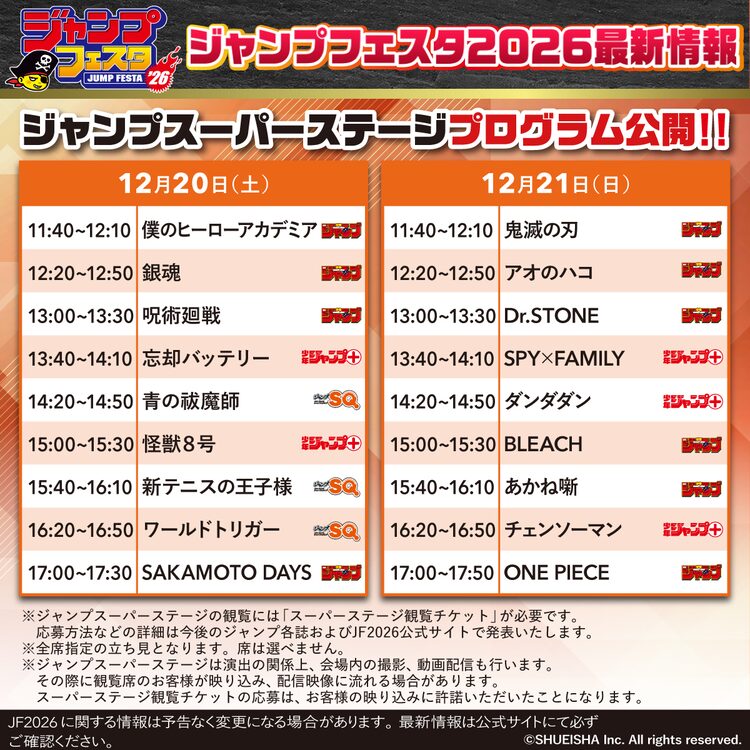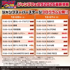 「ジャンプフェスタ2026」の全ステージプログラムと、「ジャンプスーパーステージ」の出演者が発表された。