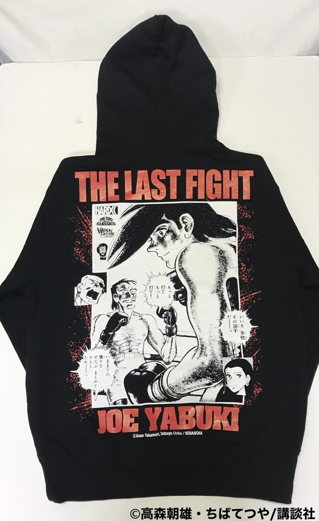 またパーカー「あしたのジョー/THE LAST FIGHT」は、背面に”キング・オブ・キングス”ホセ・メンドーサとのラストファイトの1コマが大きくプリントされ、セコンドで見守る丹下段平、白木葉子、さらには観衆のヤジまで入った臨場感あふれる1着となっている。そのほか「丹下拳闘クラブ」のロゴを忠実に再現したキャップも用意された。商品はハードコアチョコレートの実店舗のほか、オンラインストアやAmazonなどでも販売中だ。