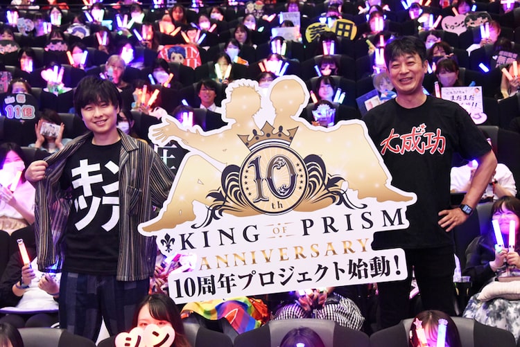 本日は「打ち上げ舞台挨拶」ということで、全国のライブビューイング会場も対象の抽選会も開催。菱田総監督は抽選会で金沢の鑑賞者にプレゼントが当たったことに触れ、「金沢から僕、ずっと圧をかけられてるんです、来て来てって。俺は行きたいので、ちょっと待ってて!」とメッセージを送った。さらに「KING OF PRISM」10周年プロジェクトの始動と10周年記念ロゴも発表され、客席からは大歓声が沸き上がった。