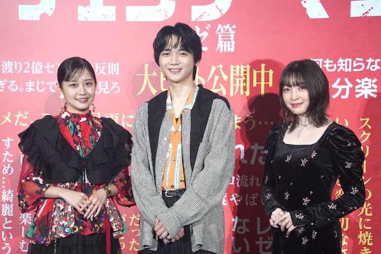 劇場版「チェンソーマン レゼ篇」の舞台挨拶が本日10月4日に東京・TOHOシネマズ池袋で開催され、デンジ役の戸谷菊之介、マキマ役の楠木ともり、レゼ役の上田麗奈が登壇。公開後の反響などを語った。なお本レポートには「レゼ篇」のネタバレが含まれる。