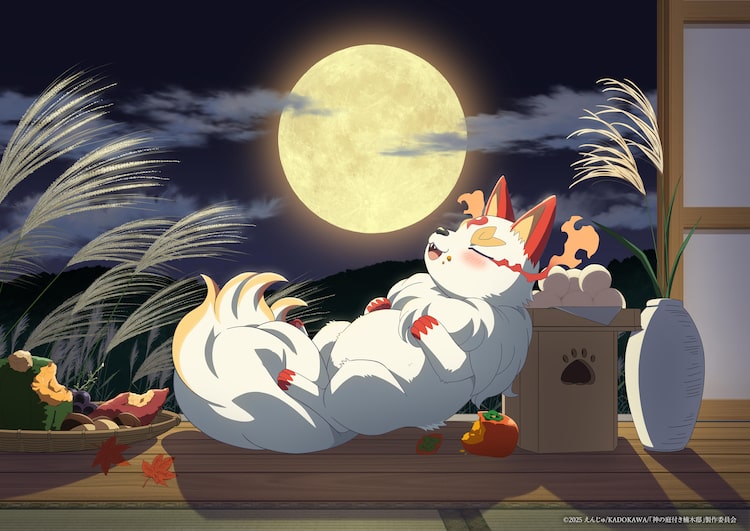 今年の十五夜に合わせて描き下ろされた「お月見ビジュアル」。満月の輝く縁側で、お腹がいっぱいになり寝てしまった山神の姿が描かれた。また本ビジュアルを使用した、ポストカードのプレゼントキャンペーンも公式Xで実施されている。