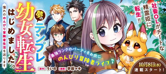 ういの原作による宇田マキの新連載「夢のテンプレ幼女転生、はじめました。 憧れののんびり冒険者生活を送ります」が、本日10月8日にアルファポリスで開幕した。