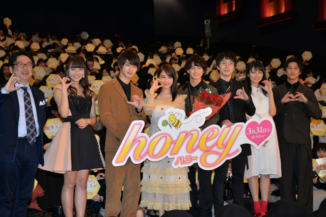 目黒あむ原作による実写映画「honey」の完成披露舞台挨拶が、本日2月21日に東京・バルト9にて開催された。