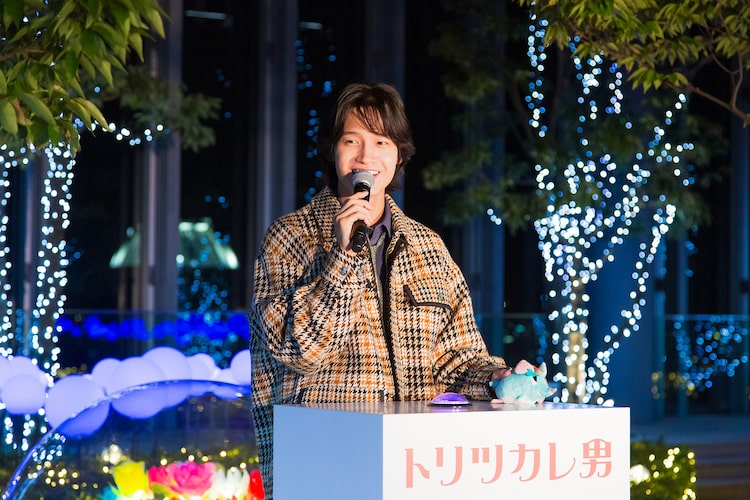 佐野は自身の演じるジュゼッペの相棒であるハツカネズミ・シエロのぬいぐるみを手に登場。Aぇ! groupの一員として関西を拠点に活動してきた佐野は「去年はデビューのタイミングで、東京タワーの点灯式をグループで行いまして。去年は東京を照らし、今年は関西を照らして、いろんなところを照らすことができて幸せです」と笑顔でコメントした。ぬいぐるみのシエロの鼻先で点灯スイッチを押し、煌びやかなイルミネーションが点灯させた佐野。「綺麗ですね!」と驚きの声を上げ、イルミネーションを見渡した佐野は「イルミネーションの花が偶然にも『トリツカレ男』に出てきそうなカラーで素敵です」と感想を話した。