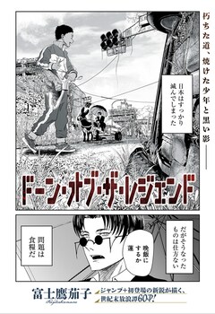 ゾンビによって崩壊した日本を吸血鬼と少年が旅する「ドーン・オブ・ザ・レジェンド」 2025年11月12日2025年11月12日 editor 「ドーン・オブ・ザ・レジェンド」扉ページ (c)富士鷹茄子/集英社富士鷹茄子の読み切り「ドーン・オブ・ザ・レジェンド」が、本日11月12日に少年ジャンプ+で公開された。 「ドーン・オブ・ザ・レジェンド」の舞台は、ゾンビが蔓延し崩壊した日本。吸血鬼のドゥミトルはゾンビになる間際の人間に託された少年・蓮を“食料”として連れて、旅を続けていた。そんなある日、2人はショッピングモールから煙が立ち上がるのを発見し、生存者がいるのではとモールへと向かう。 関連記事期間は“ある目的”を果たすまで、伯爵令嬢が憧れの公爵と結婚する新連載「魔術師クノンは見えている」追加キャストに山口立花子、島﨑信長 新ビジュアル公開落ちこぼれ少年、もふもふかわいい“宝石獣”と旅に出る マンガUP!作品が単行本化元ゴーレムの少年と“厄災王”の娘の学園マジックアクション「楽園守護者の最強転生」劇場版「銀魂」新場面カットに月詠や鳳仙の姿 甲斐田裕子らキャスト6人のコメントも「恐怖コレクター」アニメ化、2026年秋にNHKで放送開始 イメージビジュアル公開 Tweet