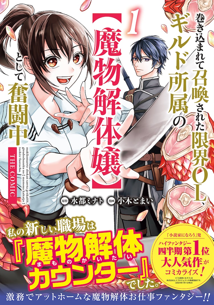 水都ミナト原作による小木とまい「巻き込まれて召喚された限界OL、ギルド所属の【魔物解体嬢】として奮闘中 THE COMIC」1巻が発売された。水都の小説をコミカライズしたお仕事ファンタジーだ。
