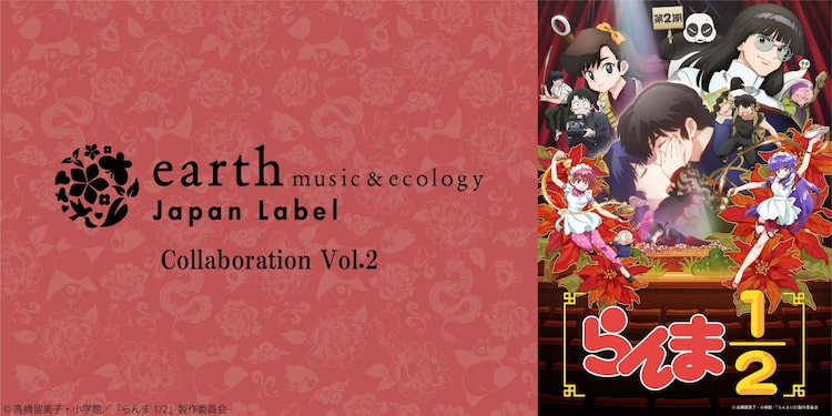 高橋留美子原作によるTVアニメ「らんま1/2」とearth music&ecologyが展開するレーベル・Japan Labelのコラボアイテムが、明日11月21日18時から12月8日23時59分まで、ECサイト・STRIPE CLUBで受注販売される。