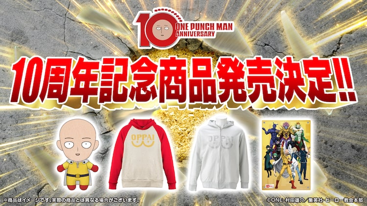 ONE・村田雄介原作によるアニメ「ワンパンマン」の放送10周年を記念した“10撃プロジェクト”より、10周年記念商品として「OPPAIパーカー」2種と「レイヤードグラフ(R)」3種が発売される。