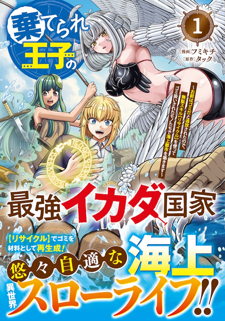 フミキチ「棄てられ王子の最強イカダ国家 ~お前はゴミだと追放されたので、無駄スキル【リサイクル】を使ってゴミ扱いされたモノたちで海上都市を築きます~」1巻が、本日12月5日にコアミックスから発売された。タックの小説を原作としたコミカライズ作品だ。