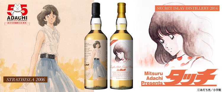 あだち充の画業55周年を記念して、「タッチ」に登場する浅倉南のイラストをラベルに使用したウイスキーが発売される。