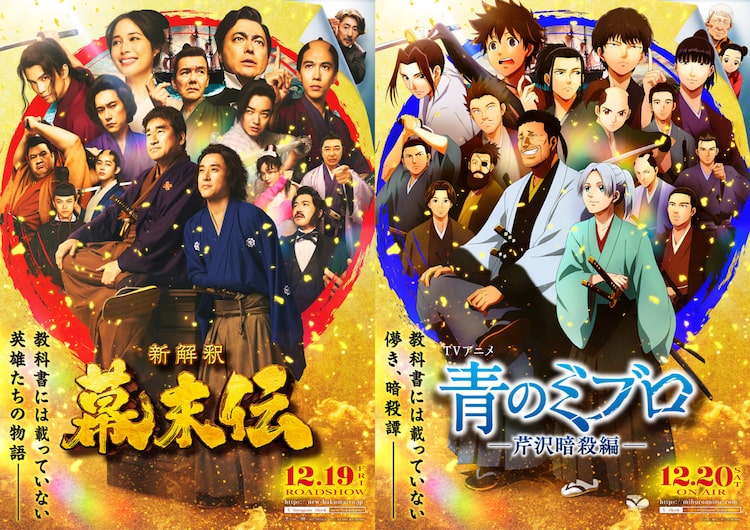 TVアニメ「青のミブロ」はのちに新選組となる壬生浪士組、通称・ミブロの隊士たちが登場する作品。第1期が2024年10月から2025年3月にかけて放送された。京の街を守るため命懸けで戦ってきた隊士たちの譲れない正義が交錯する第2期「芹沢暗殺編」は、12月20日に放送開始。一方12月19日公開の映画「新解釈・幕末伝」では、坂本龍馬と西郷隆盛の戦いと友情が描かれる。