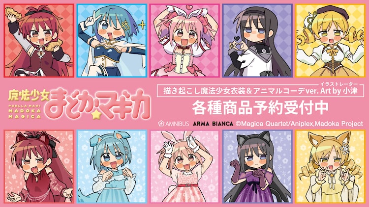 TVアニメ「魔法少女まどか☆マギカ」とイラストレーター・小津のコラボグッズが、通販サイトのAMNIBUSで受注販売されている。
