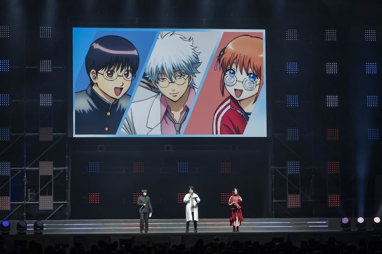 「ジャンプフェスタ2026」内の「銀魂」ステージの様子。左から志村新八役の阪口大助、坂田銀時・銀八役の杉田智和、神楽役の釘宮理恵