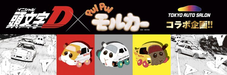 しげの秀一「頭文字D」と、ストップモーションアニメ「PUI PUI モルカー」のコラボアイテムが三栄から登場。1月9日から11日にかけて千葉・幕張メッセで開催される「TOKYO AUTO SALON 2026」にて販売される。