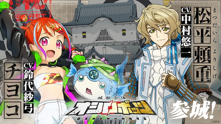 MIXI_ANIMEオリジナルコンテンツ「城郭合体オシロボッツ」のキャストが新たに発表。オシロボット高松城パイロットのチヨコ役を鈴代紗弓、シロダマ(武将)の松平頼重役を中村悠一が務める。
