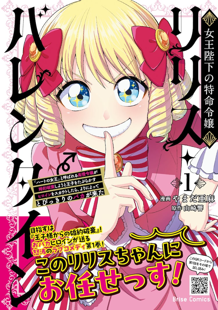 やまだ亜麻「女王陛下の特命令嬢リリス・バレンタイン~『ハートの女王』と呼ばれる高慢令嬢が婚約破棄しようと王子をたぶらかすヒロインをスカウトしたら、よりによってとびっきりのバカが来た~」1巻が、本日1月14日に発売された。山崎響の小説をコミカライズしたものだ。