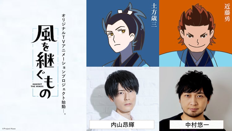 オリジナルTVアニメ「風を継ぐもの」に、土方歳三役として内山昂輝、近藤勇役として中村悠一が出演する。