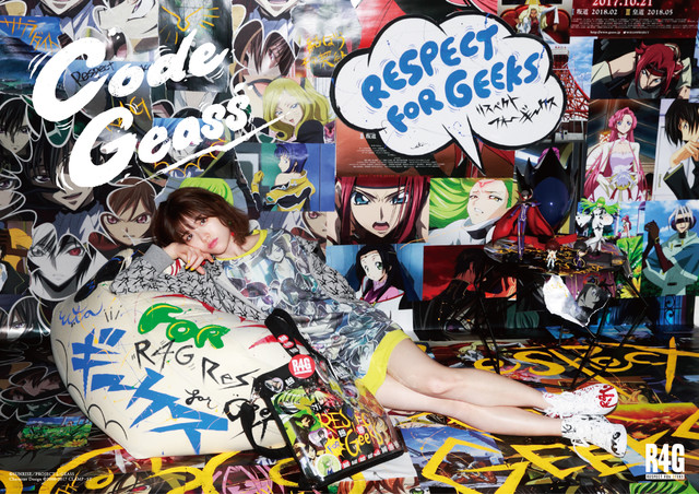 「R4G」はバンダイとアパレルブランド・バロックジャパンリミテッドによる新ブランド。「コードギアス」のグッズはTシャツ、パーカー、キャップ、ショートパンツ、デニムといったファッションアイテムから、クリアファイル、ポーチなどの雑貨まで幅広く展開される。またブランドのビジュアルにはアニメ好きとしても知られる乃木坂46の松村沙友理が起用されている。