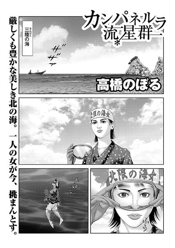 「カンパネルラ流星群」は三陸の海にて、若い海女が海の中で不思議な貝を見つけるところから物語が始まる。その貝を地上へと引き上げた海女のもとに、突然大谷翔平が現れ……。岩手の名産や名作が次々と登場するファンタジックでパワフルなストーリーだ。