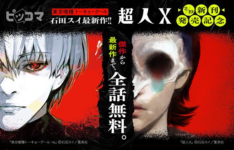 石田スイ「超人X」の最新15巻発売を記念し、本日2月6日よりピッコマで「石田スイフェア」を開催。期間中、「東京喰種トーキョーグール」「東京喰種トーキョーグール:re」「超人X」の全話無料公開が行われる。