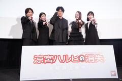 劇場版「涼宮ハルヒの消失」リバイバル公開記念舞台挨拶が、本日2月7日に東京・新宿バルト9で開催され、涼宮ハルヒ役の平野綾、キョン役の杉田智和、長門有希役の茅原実里、朝比奈みくる役の後藤邑子、古泉一樹役の小野大輔が登壇した。