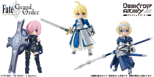 スマートフォン向けゲーム「Fate/Grand Order」のマシュ・キリエライト、アルトリア・ペンドラゴン、ジャンヌ・ダルクのフィギュアが、メガハウスのフィギュアシリーズ「デスクトップアーミー」に登場した。