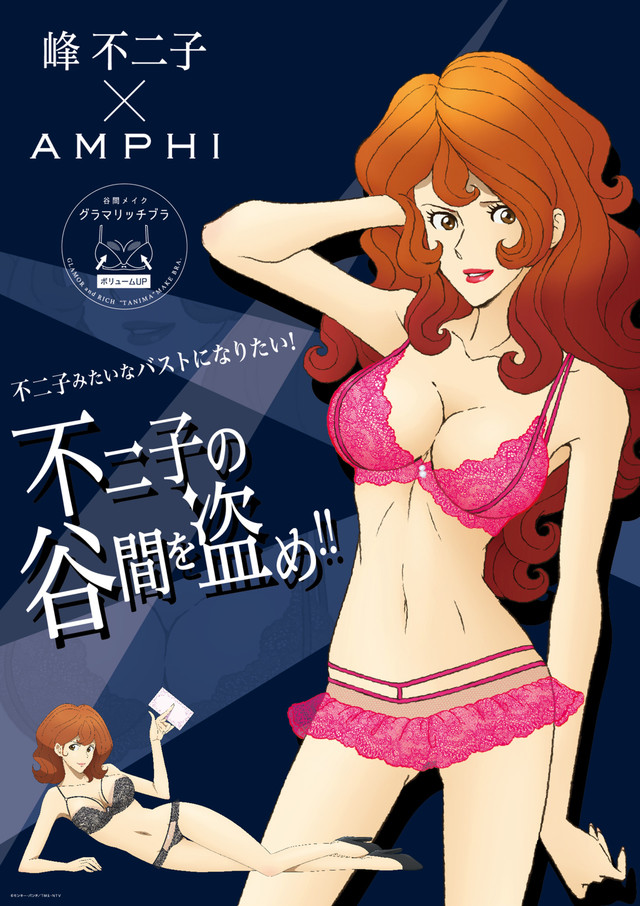またコラボレーションを記念し、AMPHIの公式サイトではルパンや次元など「ルパン三世」のキャラクターとの相性診断ができる「ルパン三世彼氏診断」を実施。診断結果をTwitterでシェアすると、抽選で30名に「グラマリッチブラ」が当たる「不二子の谷間をいただきキャンペーン」が行われる。詳細は公式サイトにて確認を。