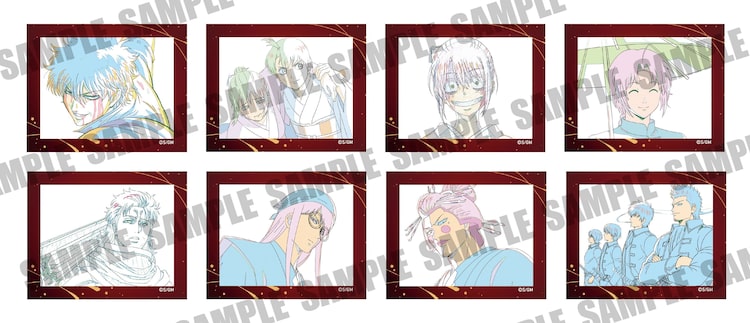 「アニメ原画ステッカー 弍」は全8種が用意され、ランダムで1枚が手に入る。絵柄はクールな表情の桂や、大夫に扮した近藤、空を見上げる真選組、血まみれになりながらも笑みを浮かべる銀時をラインナップ。さらに神楽を支える新八、覚醒した神楽、不敵な笑みを浮かべる神威、鋭い視線の阿伏兎がデザインされた。なお配布はなくなり次第終了する。