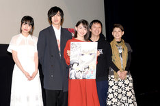 イベントではキャストへのサプライズとして、押切による描き下ろしイラストが用意された。押切からの「撮影の見学に行ったら、みんなが『サインください!』とワーキャーしてくれたのがうれしかった。でも作品を観たら(普段と)キャラクターが全然違っていて。役者さんへのリスペクトをイラストに込めました」と綴られたコメントをMCが代読すると、うれしそうにイラストに顔を近付けて見る3人。清水は「先生のところに行列ができちゃったんだよね」と回想し、監督も「サインとイラストを描いてて、結局ほとんど現場を見られていなかった(笑)」と話した。