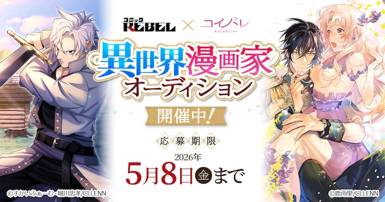 CLLENNのレーベル・コミックREBELと、コイパレ編集部が合同で主催する「異世界漫画家オーディション」が開催中。本日4月1日に、作品の募集がスタートした。