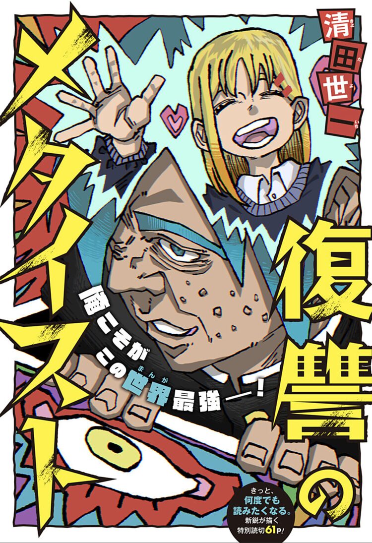 この世界がマンガの中であることを認識している男子の読切「復讐のメタイスト」 2026年4月7日2026年4月7日 editor 「復讐のメタイスト」扉ページ (c)清田世一/集英社清田世一の読み切り「復讐のメタイスト」が、本日4月7日に少年ジャンプ+で公開された。 「復讐のメタイスト」は世界がマンガの中であることを認識している“メタイスト”を描いた一編。世界で唯一のメタイストである男子、通称・オタクは、メタイストに由来するワープなどの能力を持っていたことから、自分がこの世界の主人公であると信じていた。そんなオタクは思いを寄せている隣の席の少女・シユに告白することを決意する。 関連記事本日4月7日(火)放送開始の2026年春アニメ龍幸伸「ダンダダン」初の舞台化!演出は伊藤今人、8月・9月に東京&大阪で上演「LIAR GAME」LINEマンガで4月9日まで全話無料、アニメ放送開始を記念して「スティール・ボール・ラン」2nd STAGE、2026年秋よりNetflixで毎週1話ずつ配信アニメ「とんがり帽子のアトリエ」白浜鴎描き下ろしのBDジャケットイラスト公開贋作判定されたベートーヴェンの楽譜を巡るミステリーロマンス新連載「贋作の第十番」 Tweet