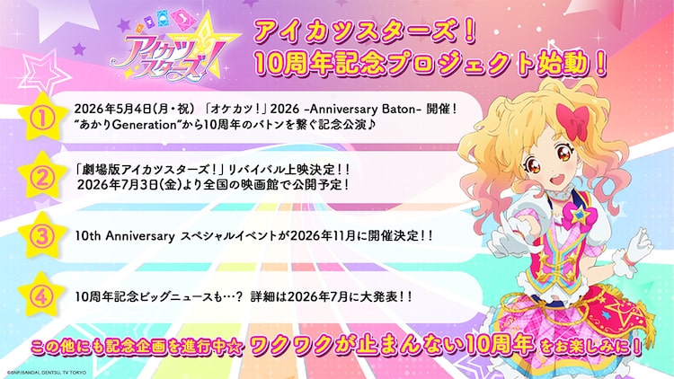 アニメ「アイカツスターズ!」の10周年記念プロジェクトが始動。その概要が発表された。