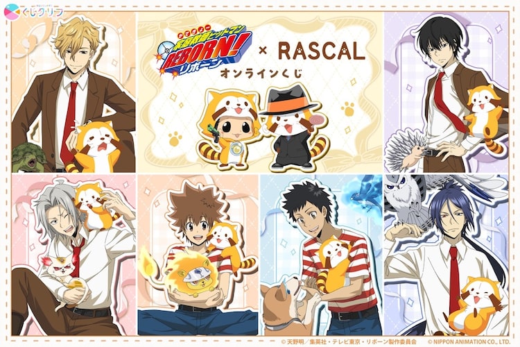 天野明原作によるTVアニメ「家庭教師ヒットマンREBORN!」と、アニメ「あらいぐまラスカル」に登場するラスカルのコラボオンラインくじが、本日4月14日から5月14日17時59分までオンラインくじサービス・くじクリフにて販売されている。1回税込770円。