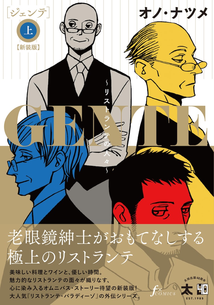 オノ・ナツメ「GENTE~リストランテの人々~【新装版】」が、5月26日に太田出版から刊行されることが決定した。全3巻で刊行されていたシリーズを、カバー描き下ろしの上下巻として再編集。上巻には8編と番外編1編、下巻には7編と番外編3編が収録される。