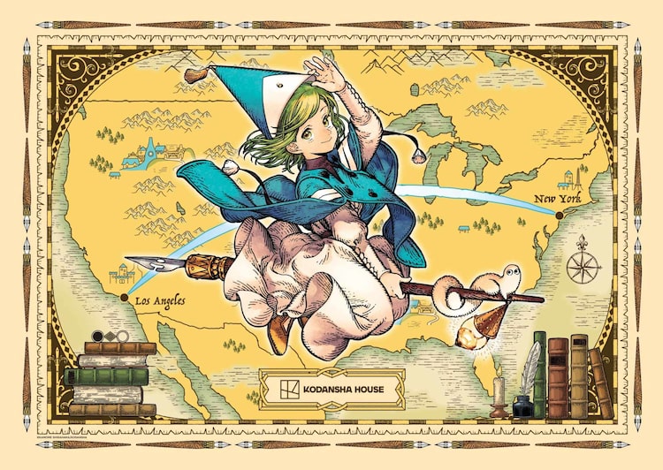 KODANSHA HOUSE初のLAイベント、「とんがり帽子のアトリエ」ココが北米を飛ぶイラスト