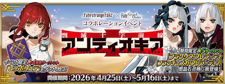 期間限定「Fate/strange Fake × Fate/Grand Orderコラボレーションイベント『剽滅十字前線 アンティオキア』」バナー