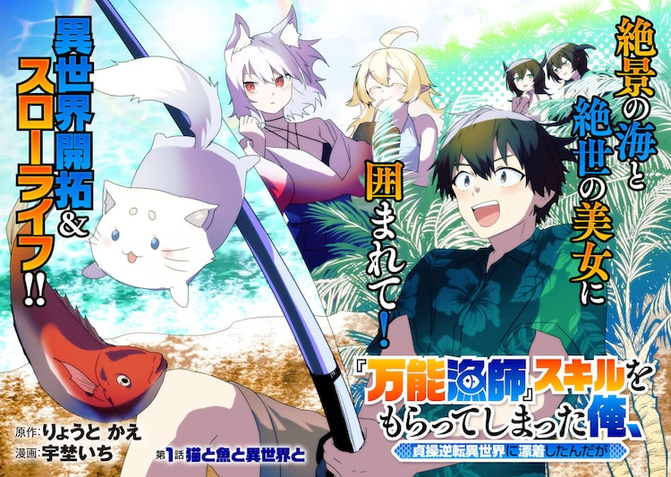 生まれつき体が弱く病院のベッドで死を迎えた水野祭は、漁具を自由に出せる“万能漁師”のスキルを得て異世界の島に転生する。思う存分に動ける体で島を探索する祭のもとには不思議な白猫や美しい獣人、エルフの美少女が集まってくるのだが、その異世界はとある理由で男性がほとんどいなくなっていて……。祭が美女たちとともに、美しい海に囲まれた異世界の島を開拓していく物語だ。