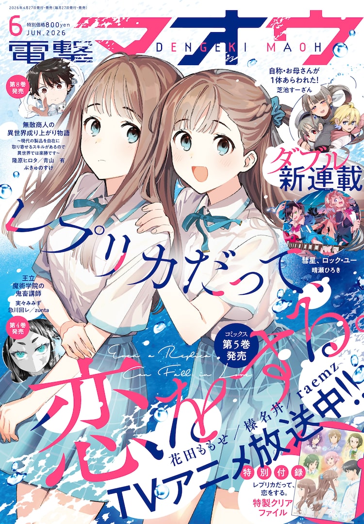 晴瀬ひろき「彗星、ロックユー」、芝池すーざん「自称・お母さんが1体あらわれた!」の新連載2本が、本日4月27日発売の電撃マオウ6月号(KADOKAWA)で開始した。また同号には「レプリカだって、恋をする。」のクリアファイルが付属している。