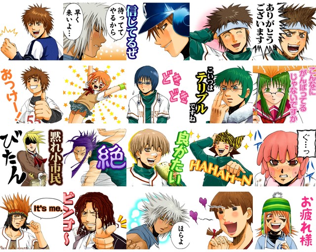 スタンプには猿野天国や犬飼冥をはじめとした十二支高校の面々や、屑桐無涯、御柳芭唐などライバル校のキャラクターのイラストを使用。ガッツポーズを取る天国や、「待っててやるから早く来いよ…」と顔を赤らめる犬飼などがスタンプ化されている。購入には240円または100コインが必要。