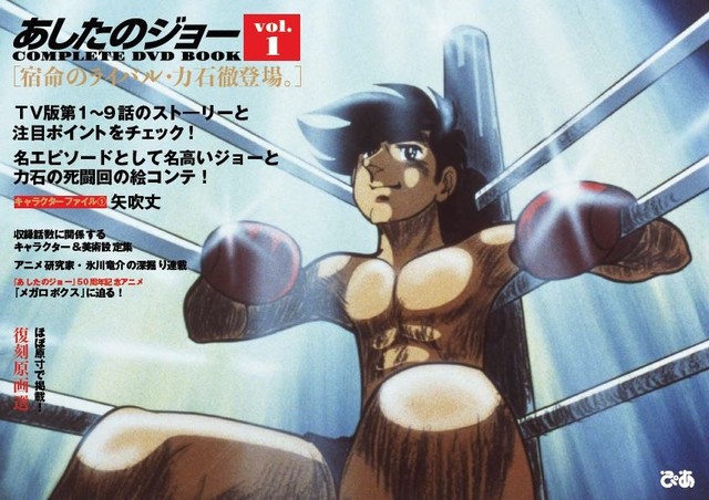 「あしたのジョー COMPLETE DVD BOOK」シリーズは、高森朝雄(梶原一騎)原作、ちばてつや「あしたのジョー」の連載開始50周年を記念し月1回のペースで刊行されるもの。各DVDにはアニメ9~10話分を収録。ブックレットには各話ストーリー解説やチェックポイント、収録話数に関係するキャラクターや美術の設定集、絵コンテなどの資料が収められる。