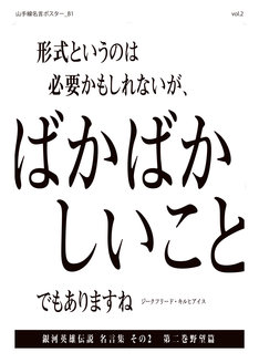 これは「『銀河英雄伝説』の歴史の中に、新アニメ『銀河英雄伝説 Die Neue These』が新たに加わる」というコンセプトのもと展開される企画の一環。「名言ポスター」には「ああ、星はいい」「形式というのは必要かもしれないが、ばかばかしいことでもありますね」など、原作に登場する42種類の名言が用意された。