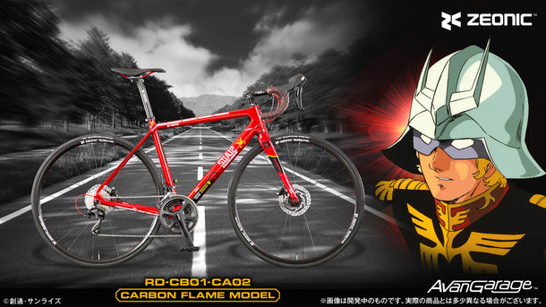 これは“史上初めてモビルスーツを開発した機械メーカー「ZEONIC社」が、シャアのために手がけたロードバイク”という設定で開発・商品化されたもの。カーボンフレームとアルミフレームの2タイプが用意されており、どちらも赤を基調にしたカラーリングが施されている。また大河原邦男が本商品のためにZEONIC社のエンブレムを描き下ろし。エンブレムはヘッドバッジとしてヘッドチューブに配された。商品の販売ページでは大河原へのインタビューを掲載している。