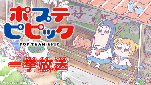 大川ぶくぶ原作によるテレビアニメ「ポプテピピック」全12話が、ニコニコ生放送にて「ニコニコ超会議2018」開催前日の4月27日19時より一挙放送される。