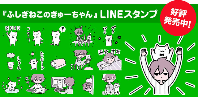 「ふしぎねこのきゅーちゃん」LINEスタンプの告知ビジュアル。