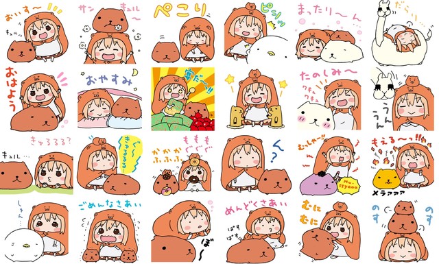 サンカクヘッド「干物妹!うまるちゃん」とカピバラさんのコラボによるLINEスタンプ「うまる&カピバラさんキュルッとスタンプ」が、本日4月17日に発売された。