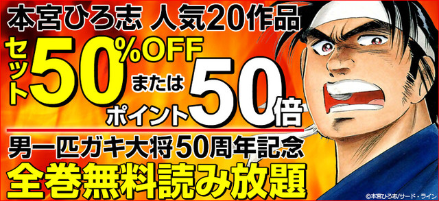 本宮ひろ志「男一匹ガキ大将」の連載50周年を記念し、同作全22巻の無料読み放題キャンペーンがeBookJapanにて行われる。